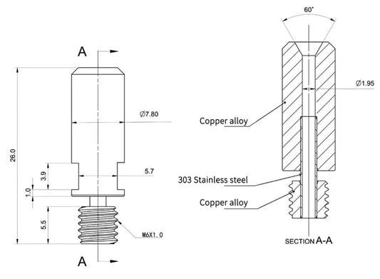 Mosquito Compatible Nozzle Hardened High Temp Plated Copper 0.4mm 1.75mm Upgrade